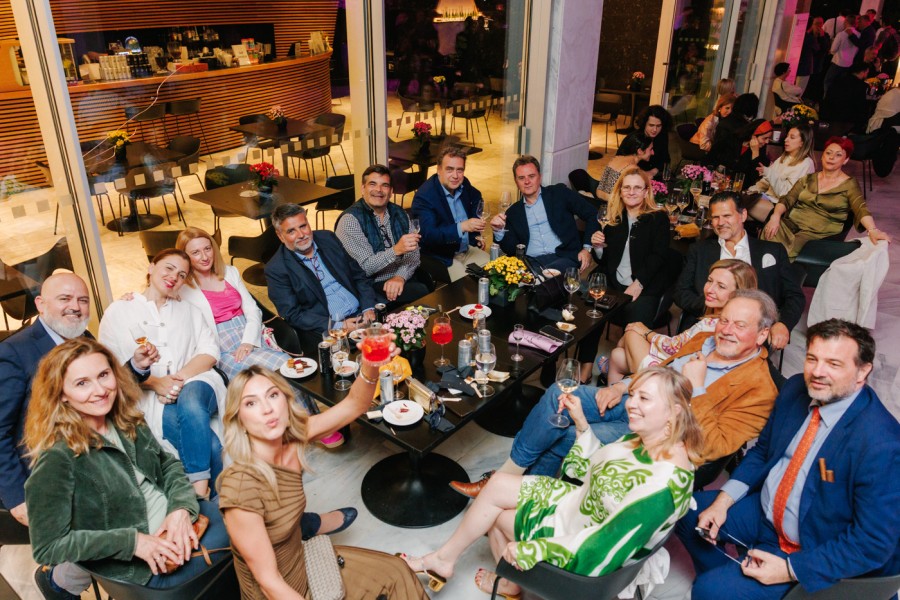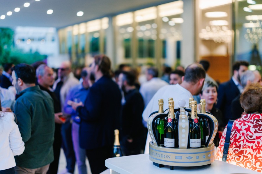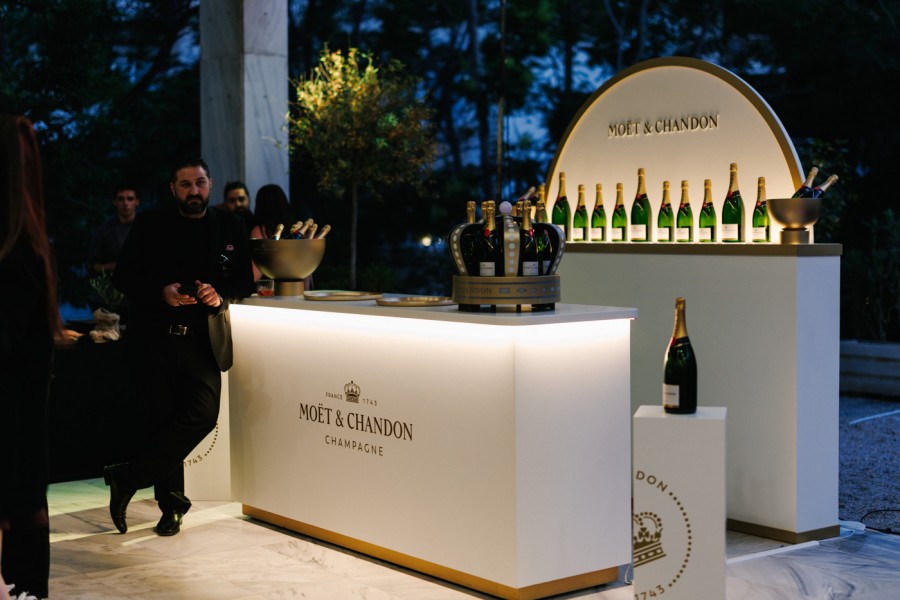 It was just before 11 p.m. when the ceremony concluded, and guests spilled out into the colonnade. There was a lively queue for photos against the backdrop, accompanied by laughter and conversation, creating a truly unique atmosphere. Our sponsors played a vital role in elevating the evening`s experience to new heights. The Moët & Chandon champagne bar was in constant motion, filling flutes with champagne, perfectly complemented by the exquisite culinary creations of Stamatis Misomikes from NYN ESTI.