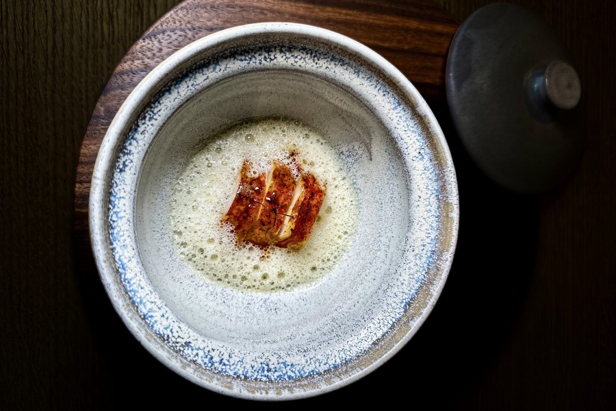 The lobster was served as a diptych. In the first part, the claw came atop a delicate tartlet with tomato and wild plum. The fruit’s acidity heightened the tomato’s sweetness, allowing the lobster to shine with purity and elegance. In the second, the tail was cooked with saffron, blue mussels and a broth made from the roasted heads. The flavour was full and aromatic, the saffron adding depth, the mussels softening the sea’s intensity with their natural sweetness.