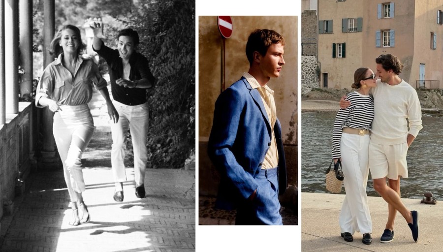 Though fashion has evolved over the decades, the core elements of Riviera menswear remain unchanged. Of course, you don’t need to be on the Côte d’Azur to channel this simple, relaxed style; it’s equally perfect for an evening cocktail on a rooftop bar in the balmy summer evenings of Athens. Just as men of that era conveyed elegance without necessarily donning a full suit — although a lightweight linen suit remains ideal — today, a crisp cotton Breton stripe shirt, a comfortable high-waisted trouser, a polo shirt, or a Cuban-collar shirt are all you need to infuse your look with a timeless twist of retro Riviera style.