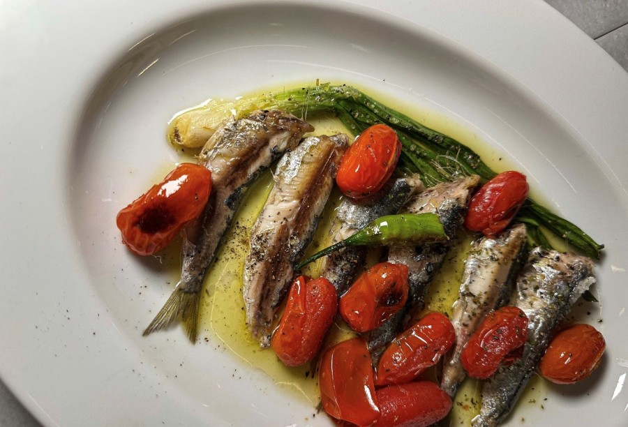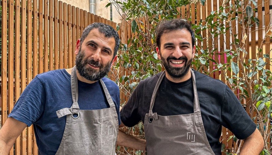 There isn’t much to say about the space — or rather, there doesn’t need to be. Before I even stepped inside, I was almost certain it would look like this, if not exactly like this. The familiar aesthetic of the new Athenian “simple”: mosaic floors, marble-topped tables, wooden chairs, grey walls, an open kitchen with its metal framework breathing over the fire. A minimalist room, cool in tone but instantly on point: you’re not here to look around in awe — you’re here to eat. And how do you eat? The answer seems obvious once you consider who’s in the kitchen: Giannis Loukakis, the man who essentially inspired Greece’s gastrotaverna movement; Periklis Koskinas, one of the most important chefs of his generation, who works wonders whenever he turns to the sea; Marios Korovesis, highly talented and until recently head chef at Cookoovaya; and Spyros Pediaditakis, a world-class pastry chef who’s surprised us more than once with his desserts.