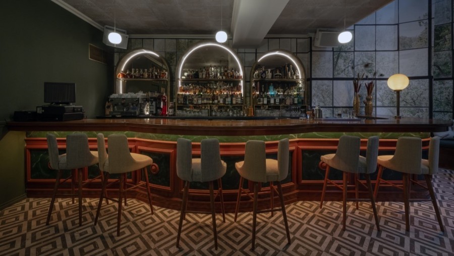 It later passed into the hands of Spyros Kerkyras, who gave it a distinctly more glamorous inflection. Today, in Kolonaki, 42 re-emerges as a refined evolution of the same DNA. The space feels more open and more urban, yet at the same time reassuringly familiar. From the very first visit, there is an immediate sense of continuity. The bar itself is imposing and entirely wooden, with depth and softly rounded lines. It anchors the room with quiet authority, becoming its true centre of gravity, even though it is positioned along one side rather than in the middle.
