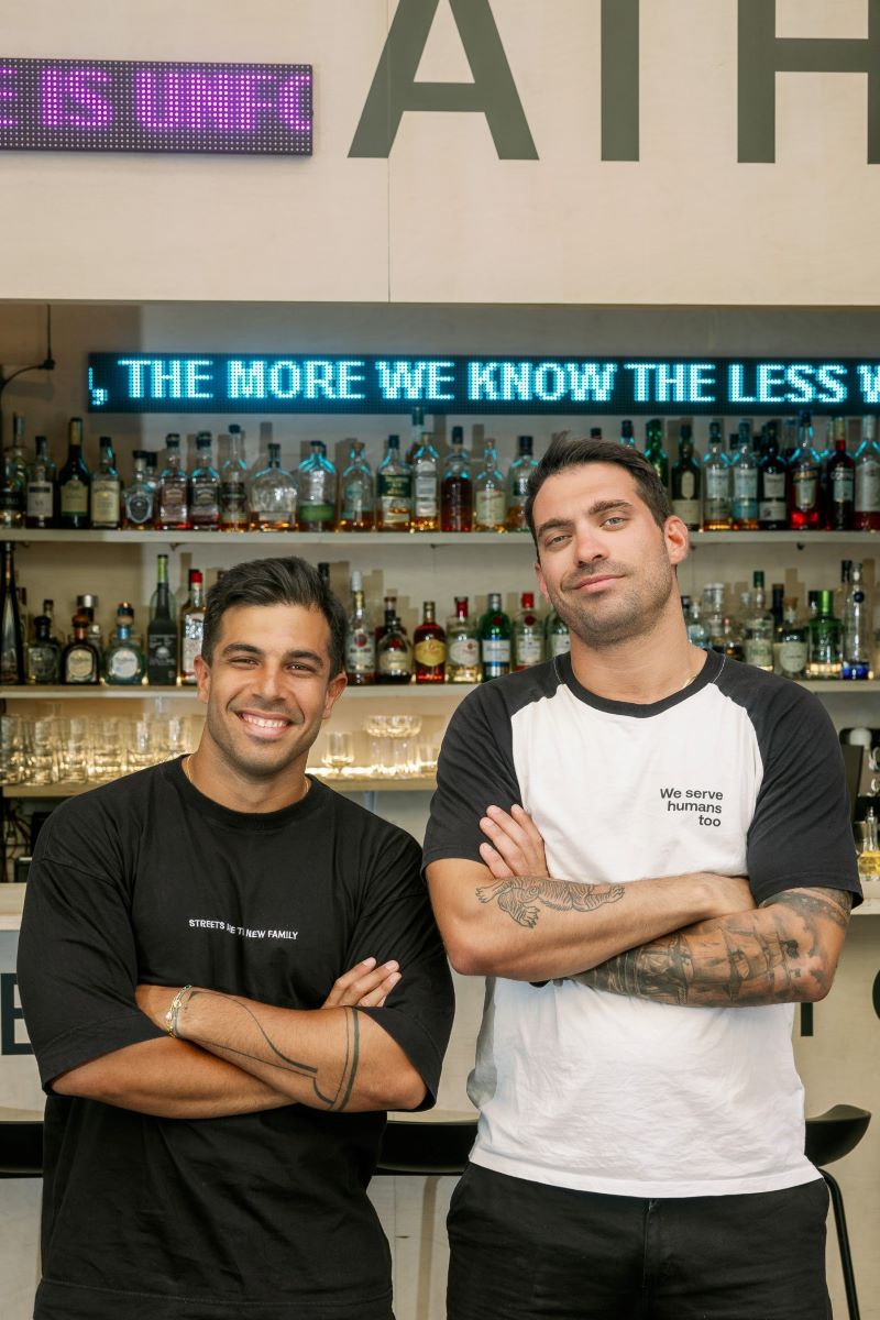Alexandros Tselepís, Konstantinos Theodorakopoulos and Symeon Papanikolaou didn’t just set up a pop-up bar to pass the time during lockdown. The idea may have first sparked when, deep into the pandemic, they were mixing drinks and drawing queues outside Piazza Duomo in Mitropoleos Square — a spot that had offered them one of the city’s most beautiful urban “windows”. So they created one of their own: a window serving cocktails on Petraki Street. They built something the city didn’t know it needed — a street bar unafraid to be authentic. No chairs, no frills — just pure pulse.As time went on, the bar never lost its laid-back vibe — but the quality kept climbing. At the outdoor bar, the menu changes daily, offering both classic cocktails and clever twists. It was something Konstantinos and I had talked about many times: how most people don’t truly know the classics, or how delicious they can be. So he set out to teach them.